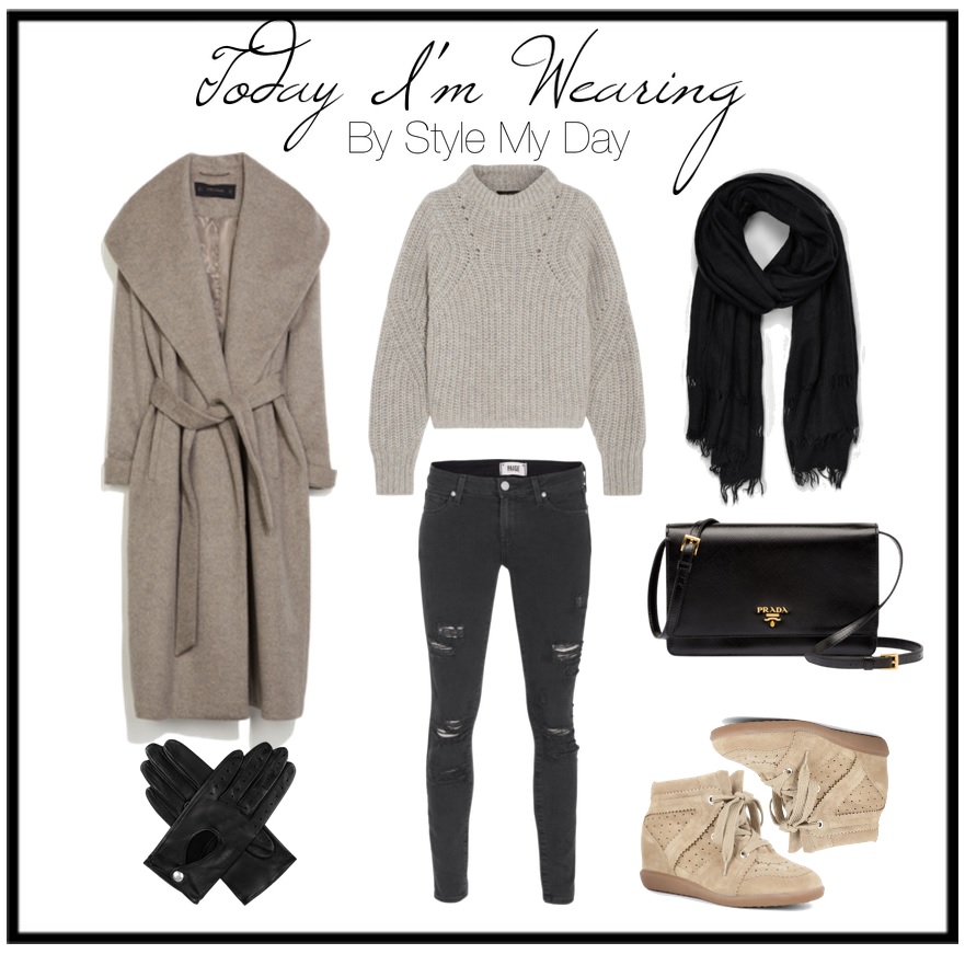Coat: Zara, gloves: Dents, sweater: Isabel Marant, pants: Paige, scarf: All Saints, bag: Prada, shoes: Isabel Marant ...