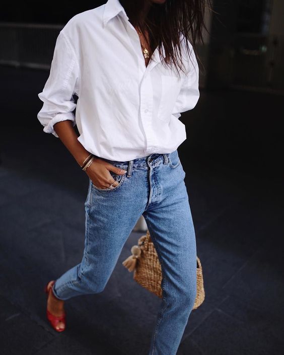 3. Een witte blouse is altijd een goed idee maar zorg ervoor dat je een altijd 1 o f 2 maten te groot koopt, hierdoor krijg je een oversized effect en dat laat je look er duurder uitzien!