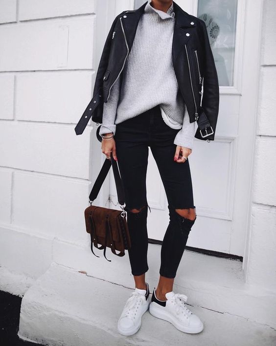 8. Vervang een jeans door een leren broek voor een chiquere look